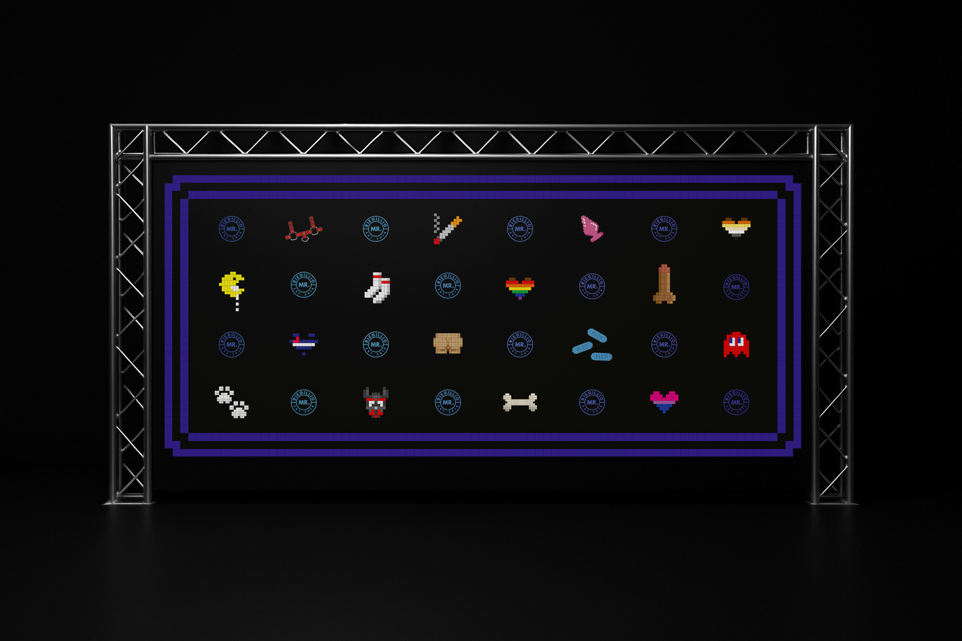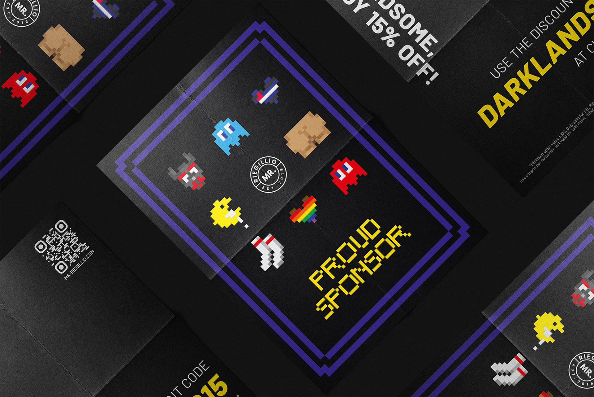 Creative direction and visual design for MR. Riegillio’s market booth at Darklands Festival 2025. Developed as a standalone concept for the space, the design took inspiration from the festival’s theme of nostalgia. Influenced by retro arcade culture, it combined playful, fetish-driven motifs with provocative visuals to create an immersive, tongue-in-cheek environment.